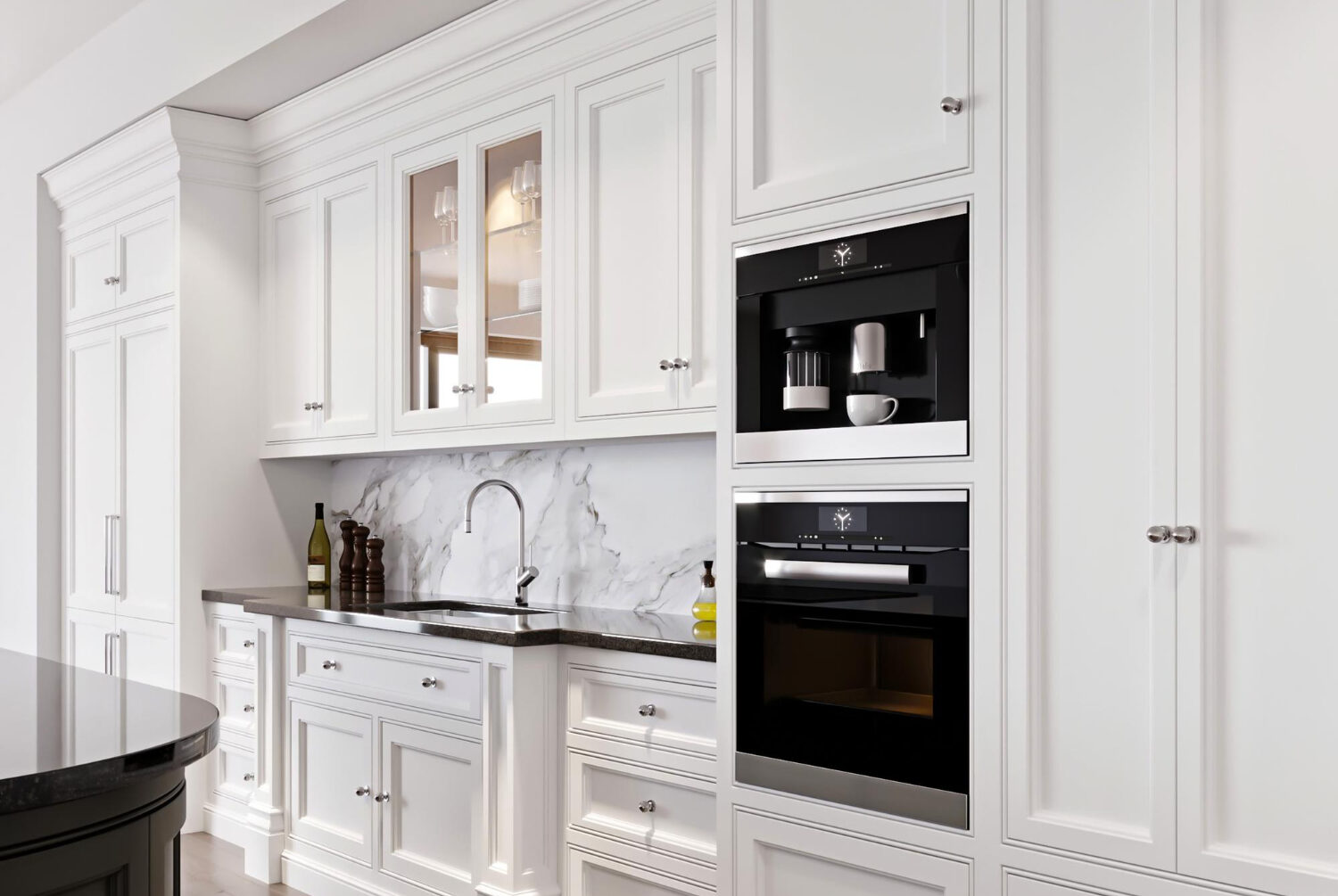 A professionally painted cabinet surface can give your space a completely new look while maintaining the original cabinet layout.